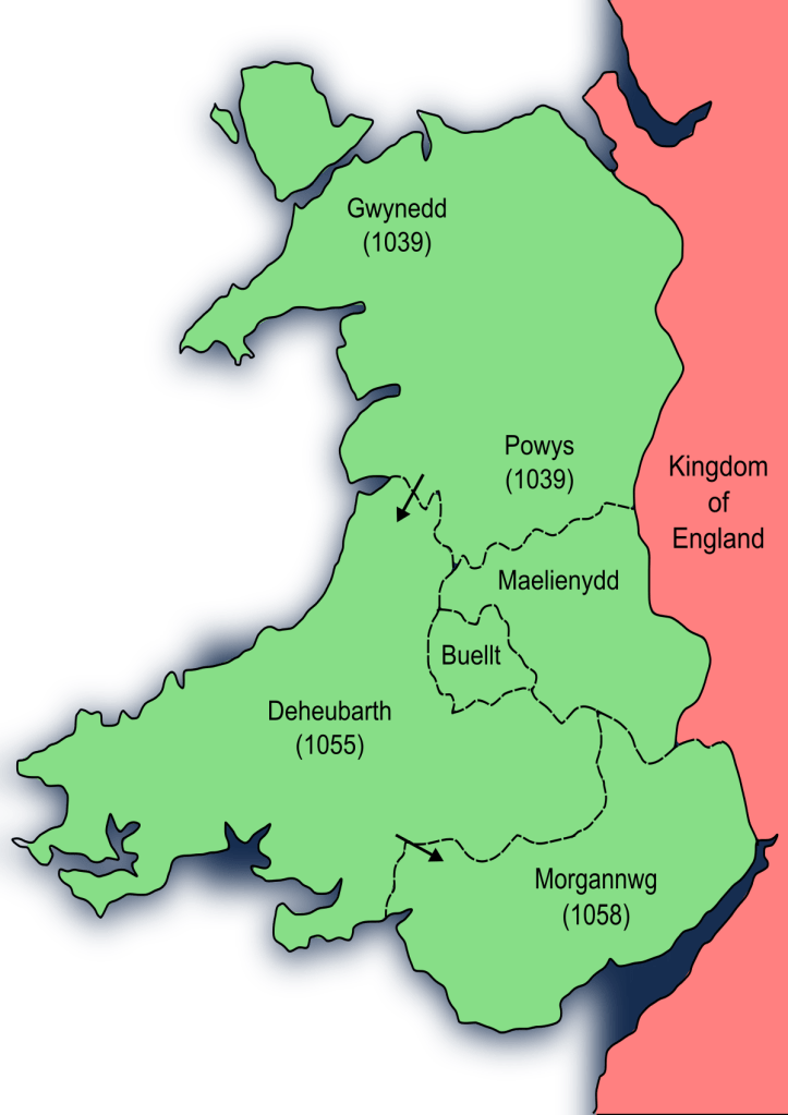 Yr unig frenin i uno Cymru’n llawn ydi Gruffudd ap Llywelyn, sydd hefyd yn trechu lluoedd ag ennill tir gan Loegr, ond am gyfnod o wyth mlynedd rhwng 1055 a 1063. Lladdir Llywelyn yn 1063 gan ei filwyr ei hun, ar ôl ei drechu gan Harold Godwinson, mae Cymru eto’n datganoli i deyrnasau cystadleuol, ar yr adeg gwaethaf bosib…