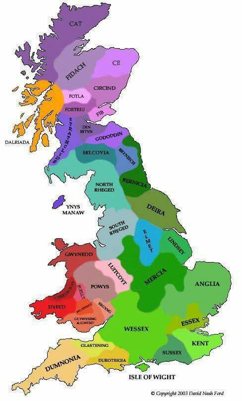 Mae ymadawiad Rhufain yn ysgogi y Saeson Cyfandirol i oresgyn a setlo yn Ne Ddwyrain Lloegr a’r Eingls yn y Gogledd Ddwyrain, dros y Seithfed Ganrif mae’r Brythoniaid yn colli tiriogaeth Lloegr wrth i Gymru, yr Hen Ogledd, a Chernyw gael eu dad-gysylltu.
