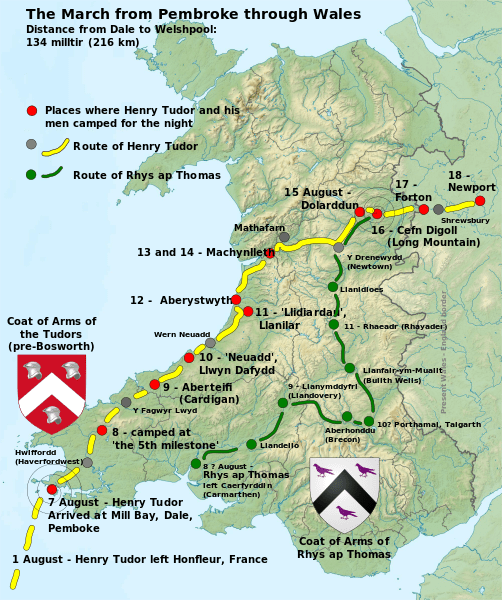 Siwrnau Harri’r Seithfed o Sir Benfro i Goron Lloegr, 1485 (ffynhonell)