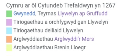 Ar ôl cyfnod o ffraeo teuluol, coder Llywelyn ap Gruffudd, ŵyr Llywelyn Fawr yn Dywysog, ag arwyddir Cytundeb Trefaldwyn yn 1267 efo Harri’r Trydydd o Loegr, yn anffodus sydd ddim yn para’n hir. Mae marwolaeth Harri a dyfodiad Edwart Y Cyntaf (Goeshir) yn diweddu efo Llywelyn Ein Llyw Olaf yn cael ei ddenu i gyfarfod efo Lloegr, a Thywysog olaf Cymru’n cael ei ladd yng Nghilmeri yn 1282.