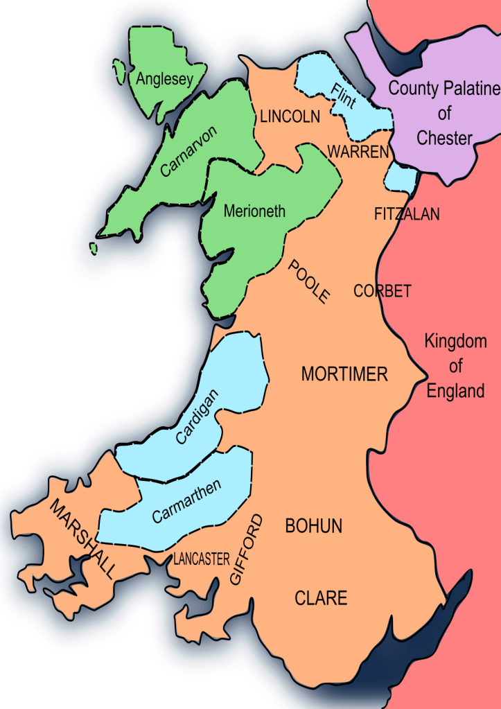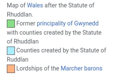 Ffiniau Cymru yn dilyn Statud Rhuddlan 1284 (ffynhonell)