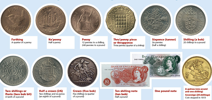 Safon ariannol Prydain cyn 1971 – Punnoedd, sylltau a cheiniogau. 12 ceiniog i bob swllt, 20 swllt a 240 ceiniog i bob punt. Daeth gwerthoedd uwch na Phunt yn arian papur gyda datblygiad bancio (ffynhonell)