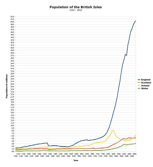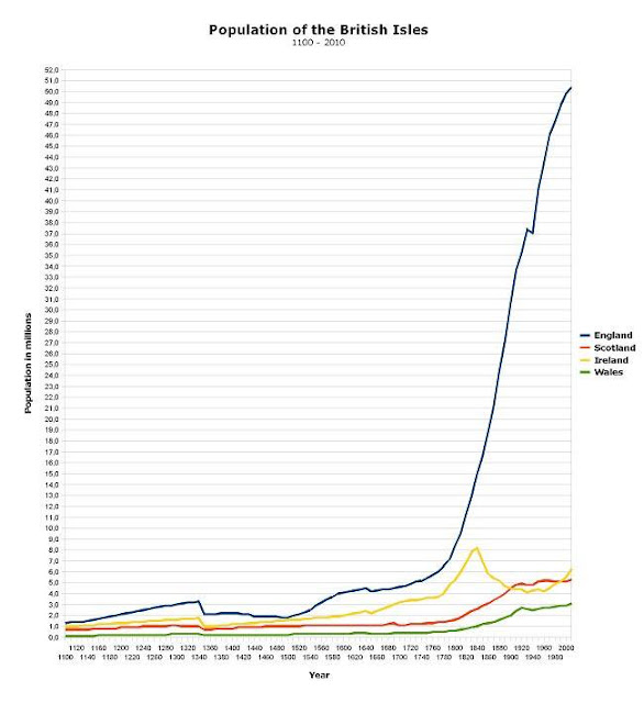 Ar ôl codi ar gyfartaledd o filiwn o bobol bob canrif rhwng 1100 a 1800, mae poblogaeth Lloegr yn ffrwydro o 8.3 miliwn yn Ngyfrifiad 1801 i 30 miliwn erbyn Cyfrifiad 1901 (ffynhonell)