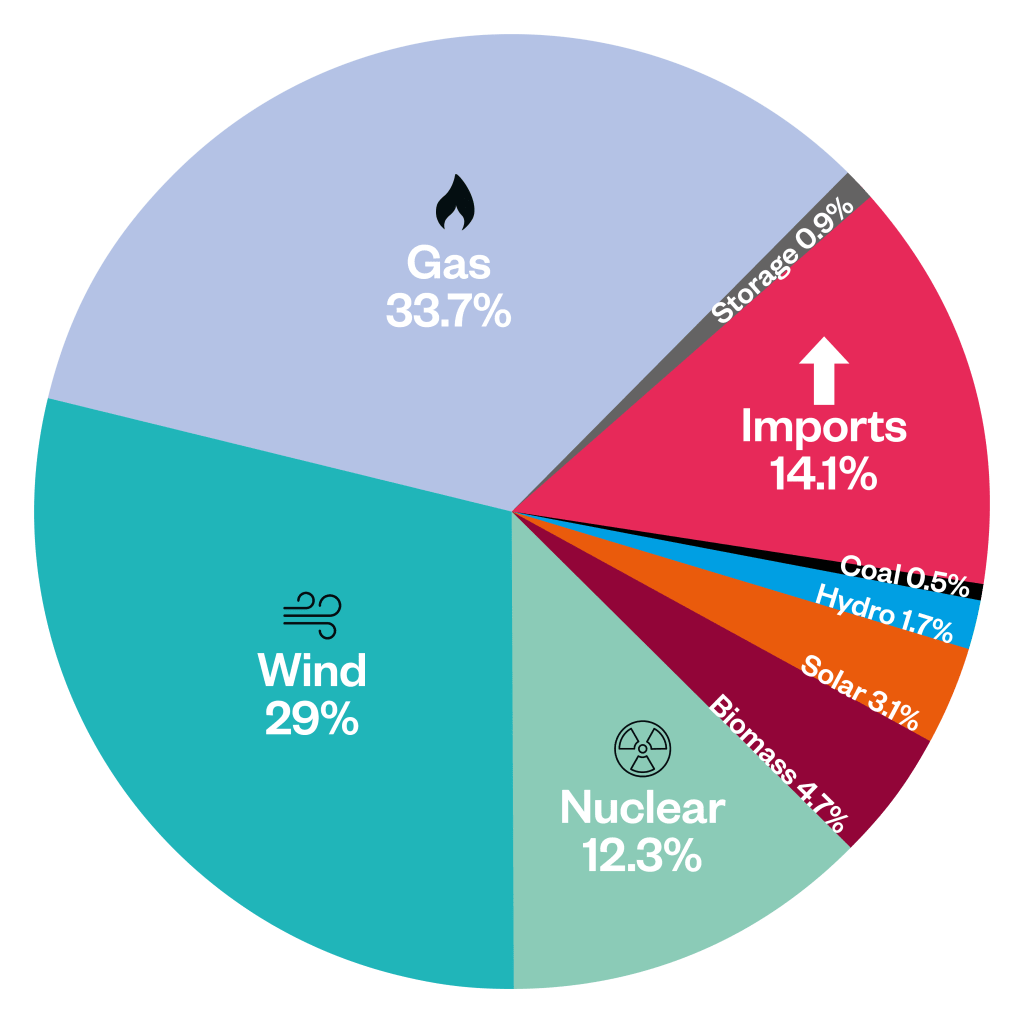 Cymysgiad egni i greu trydan ym Mhrydain yn 2023, yn dangos fod traean o’n trydan yn cael ei greu gan y tywydd anwadal. Oes yna unrhyw syndod fod mewnforion yn ffrwydro a chostau trydanol wedi dyblu yn y dair blynedd ddiwethaf, ag ein bod yn myned i greisus egni a chostau byw difrifol yn y blynyddoedd nesaf? (ffynhonell)